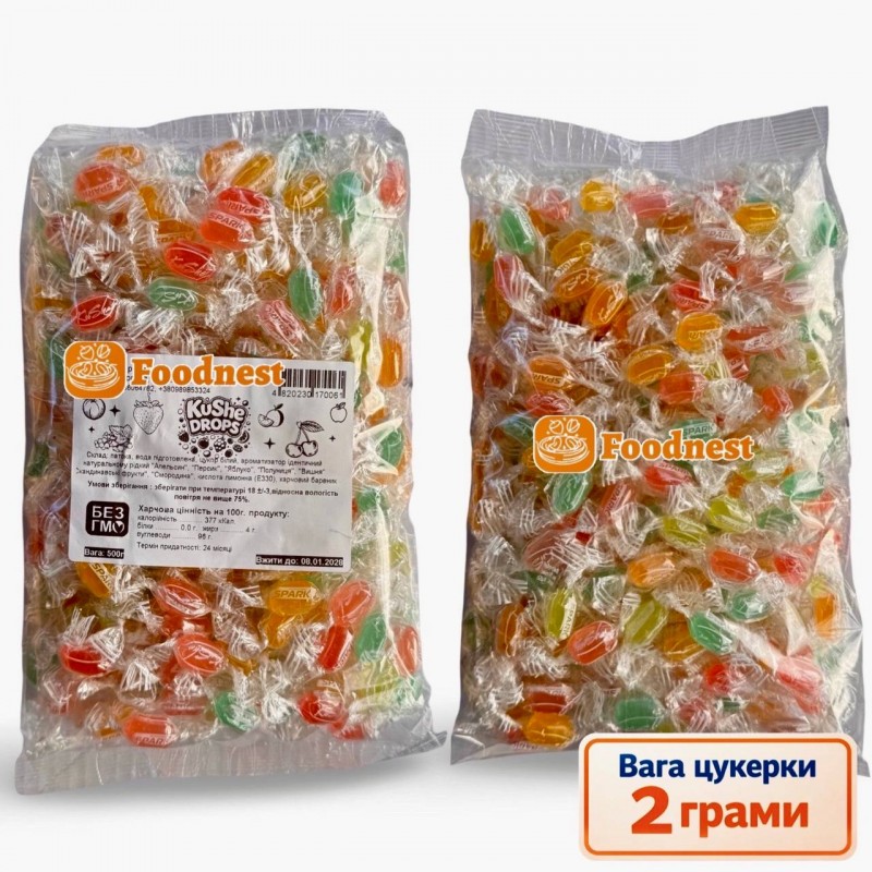 Кожна карамелька важить приблизно 2 грами, тож у 500-грамовому пакеті — орієнтовно 250 штук чистої насолоди!