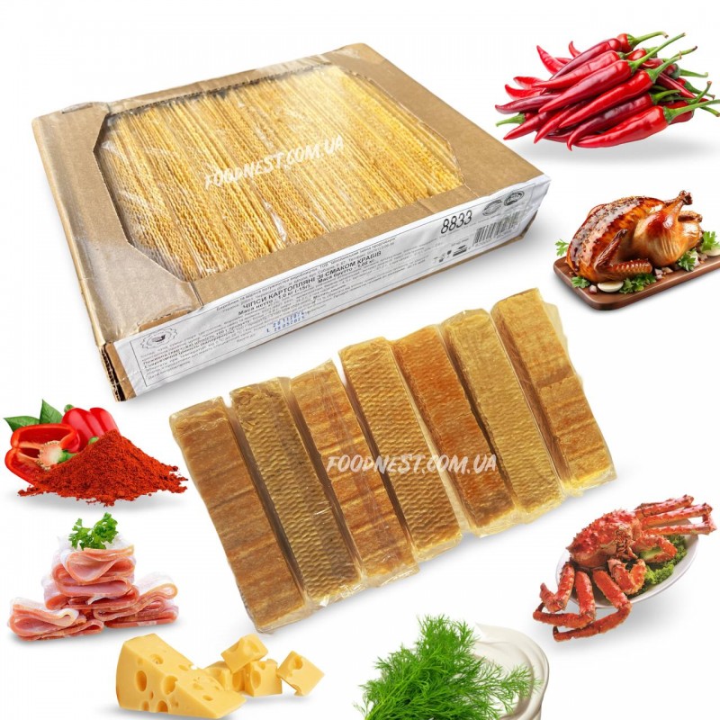 Фасування: ящик 1 кг, чипси запаковані в індивідуальні упаковки по 100 грам кожна, що робить їх зручними для зберігання, транспортування та порційного споживання